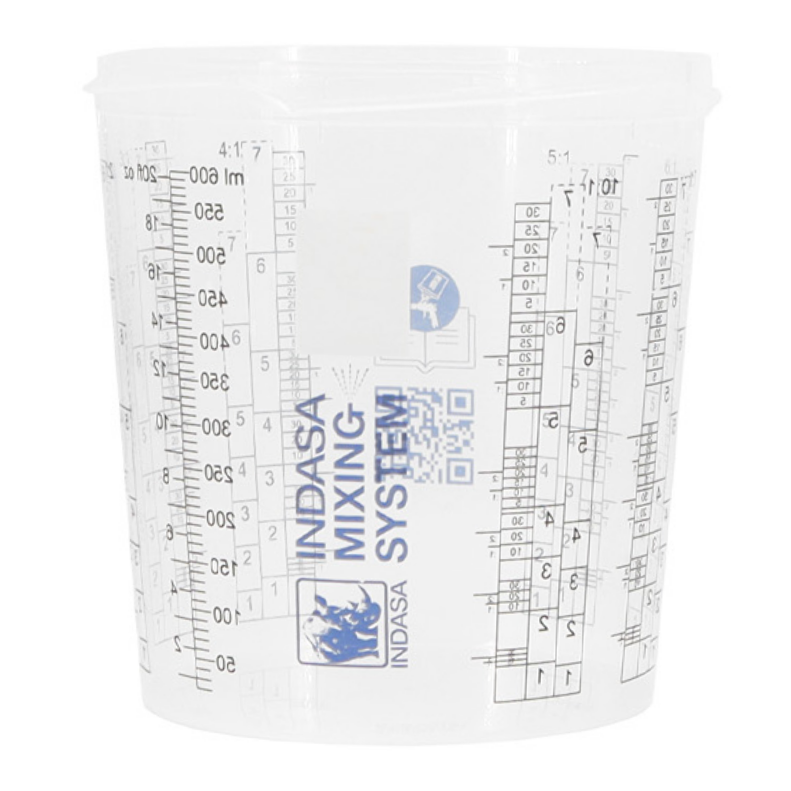 INDASA kubki lakiernicze Mixing System z podziałką, ułatwiają przygotowanie w odpowiednich proporcjach oraz bezpieczne przechowywanie lakierów i podkładów. Pomagają oszczędzać czas niezbędny do mycia kubków wielorazowego użytku.