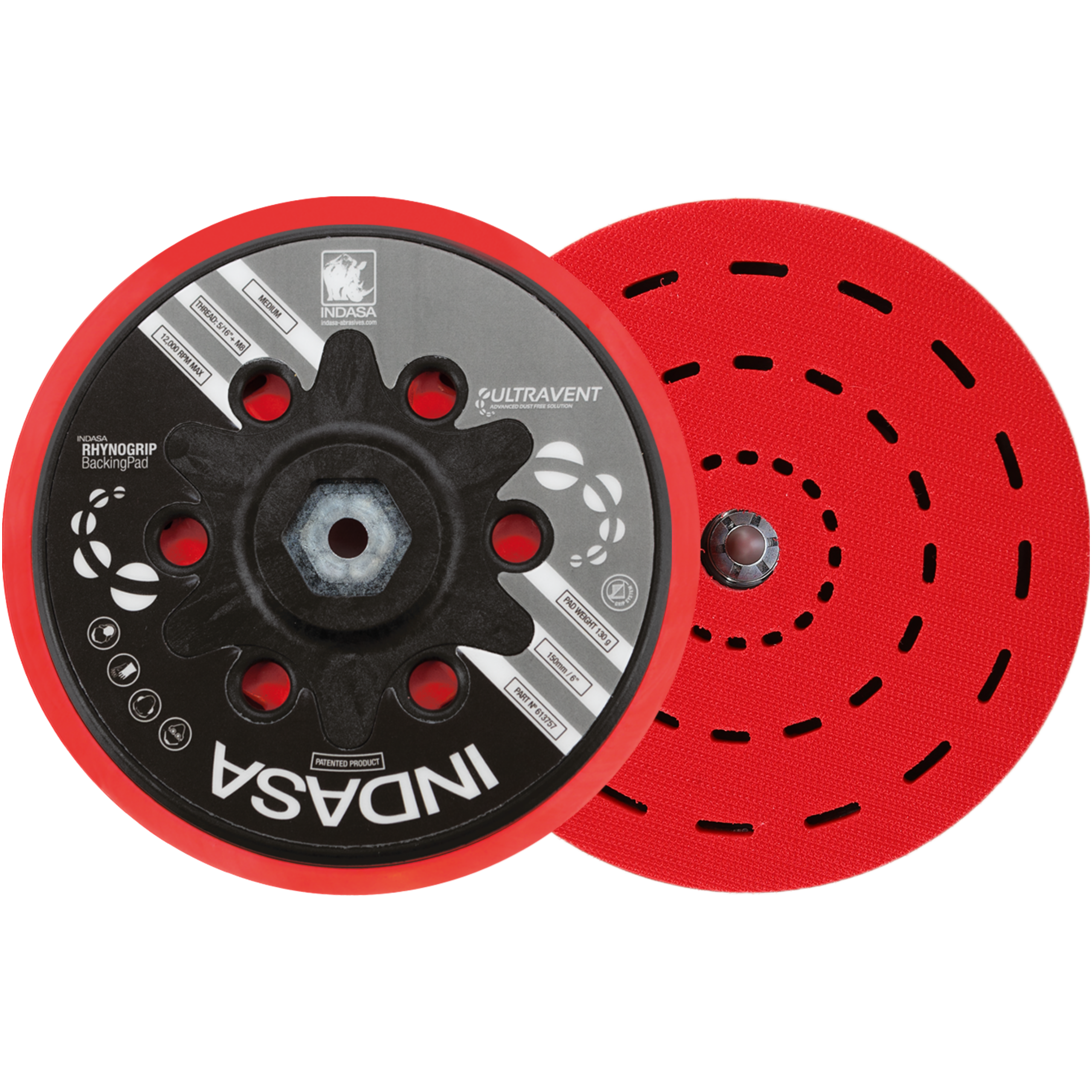 INDASA RHYNOGRIP ULTRAVENT DYSK BAZOWY NISKI PROFIL BACKING PAD 150 MM UNIWERSALNY M8 + 5/16"