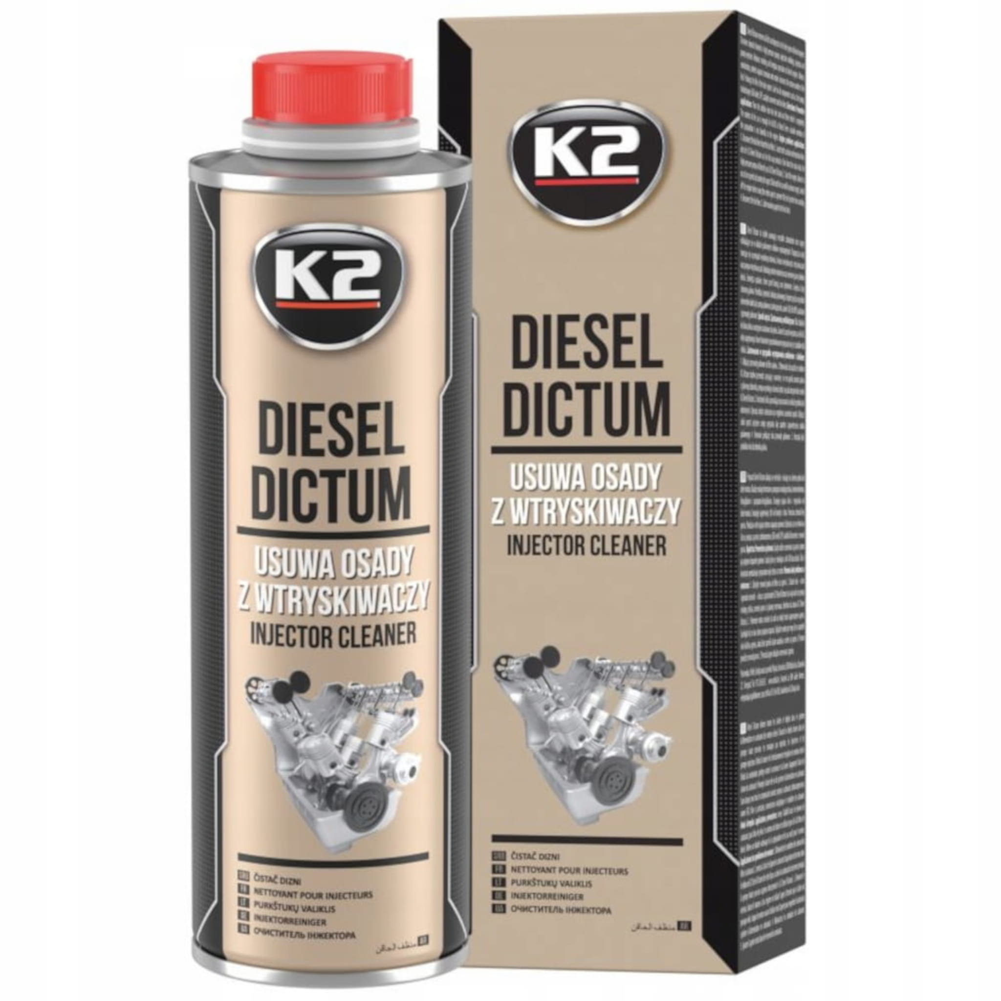K2 DIESEL DICTUM Środek do Czyszczenia Wtryskiwaczy, uniwersalny preparat usuwający wszystkie zabrudzenia oraz nagary tworzące się w układzie paliwowym silników wysokoprężnych.