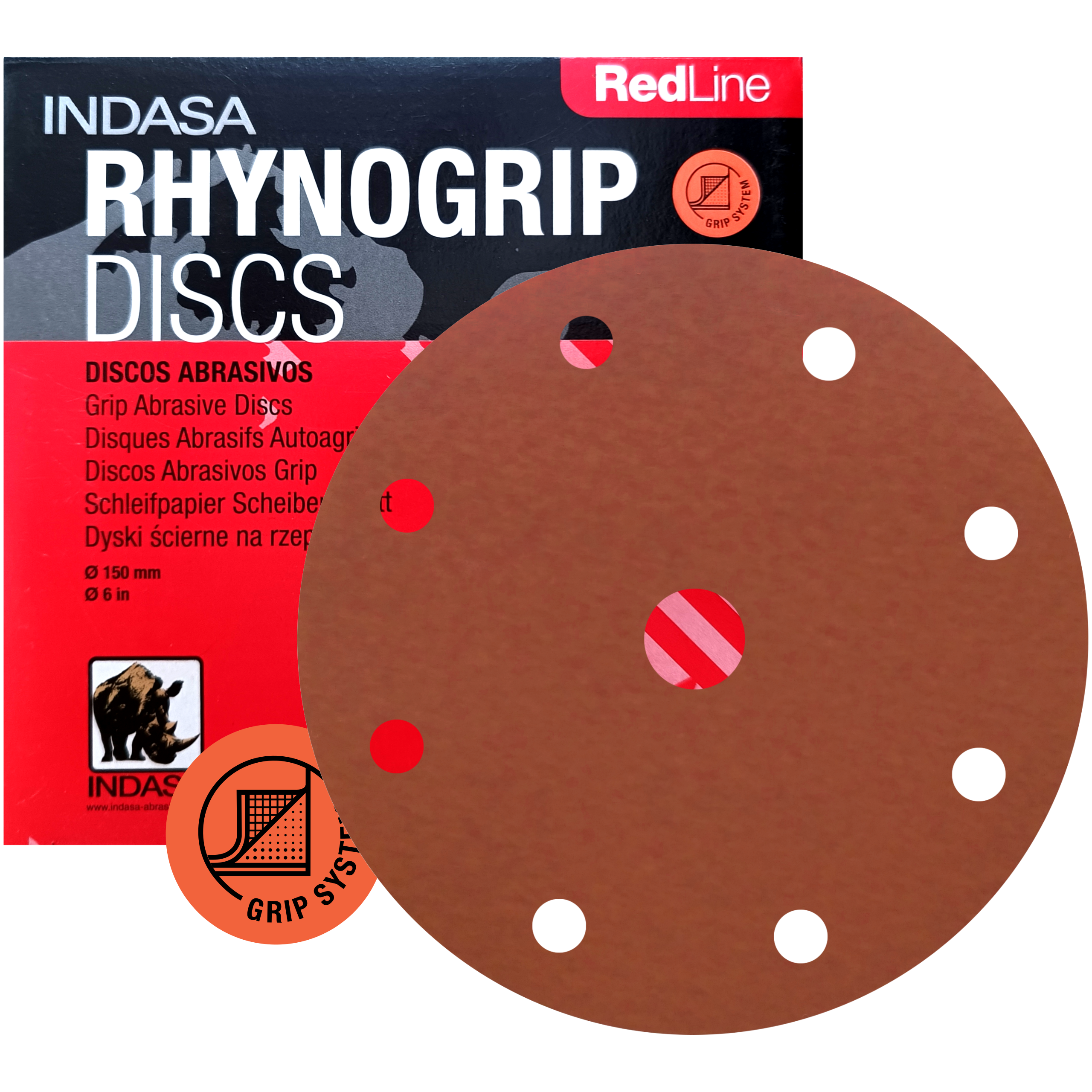 INDASA RED LINE RHYNOGRIP KRĄŻKI ŚCIERNE NA RZEP 150 MM 8+1H P320